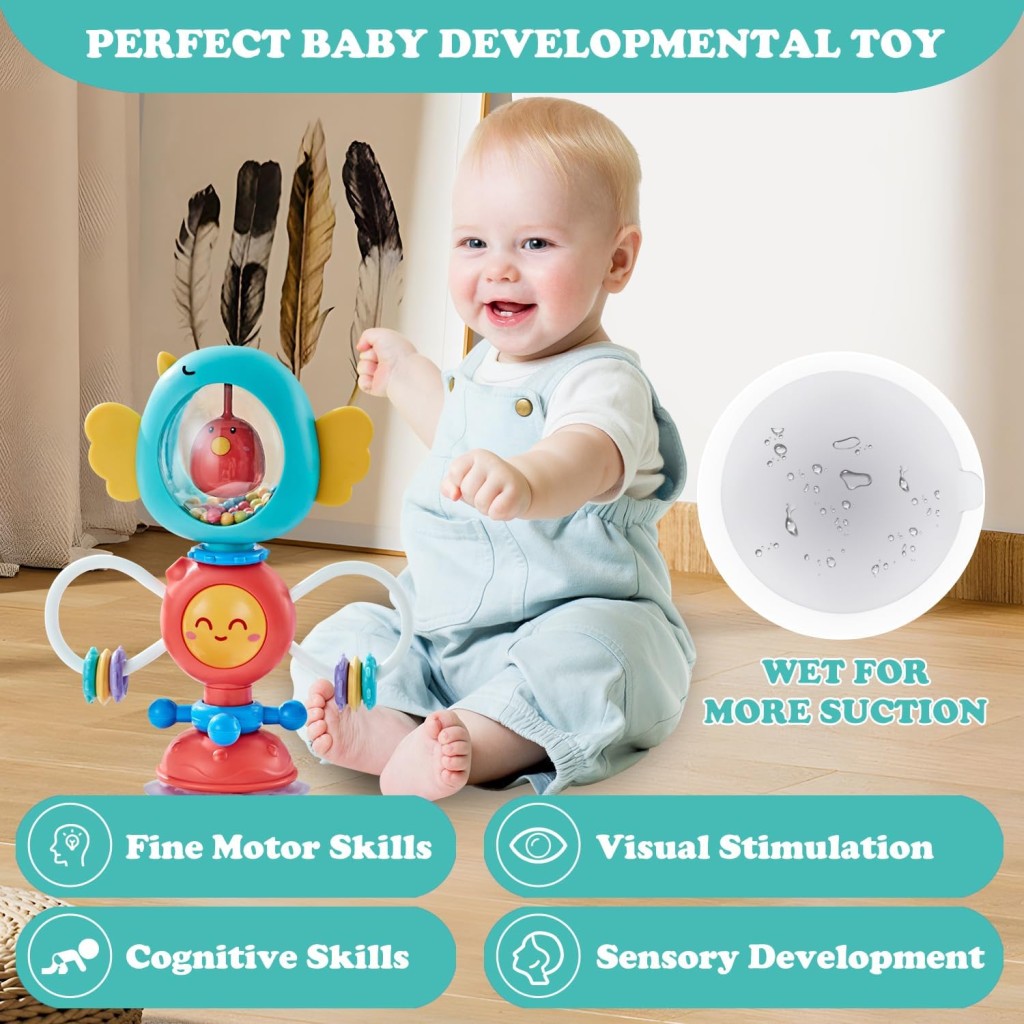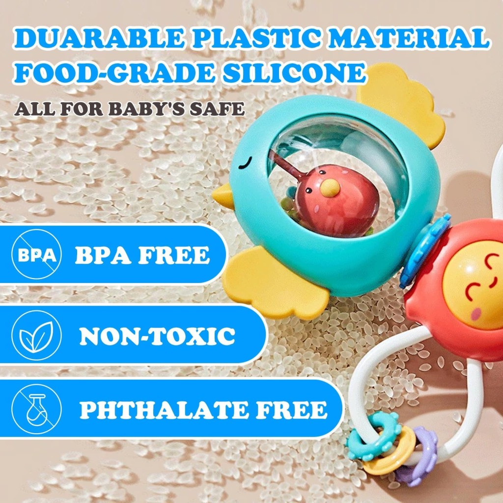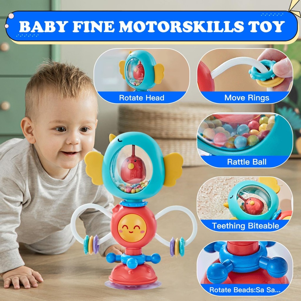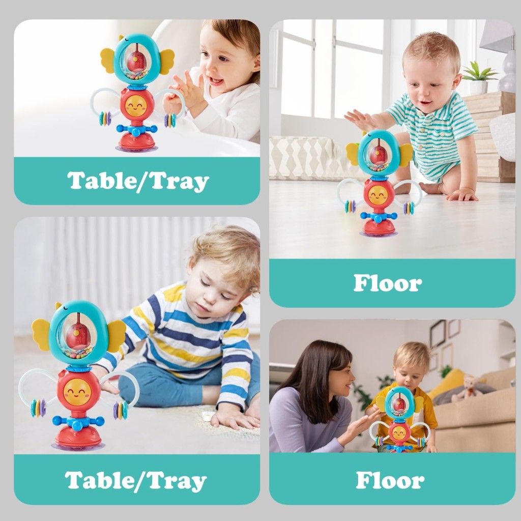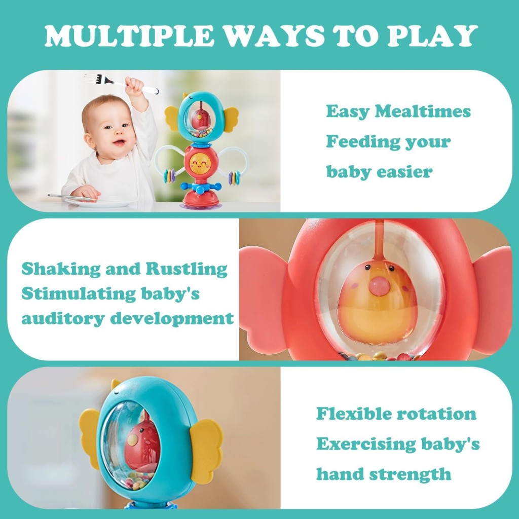 پایین جغجغه یک چسبونک برای اتصال به سطوح صاف دارد.