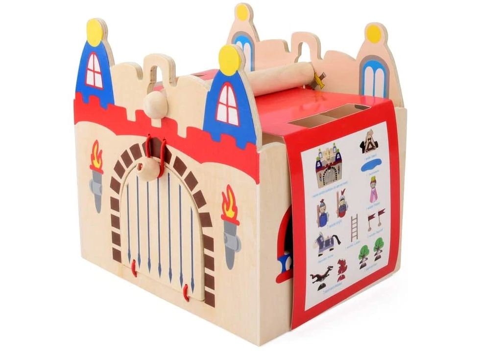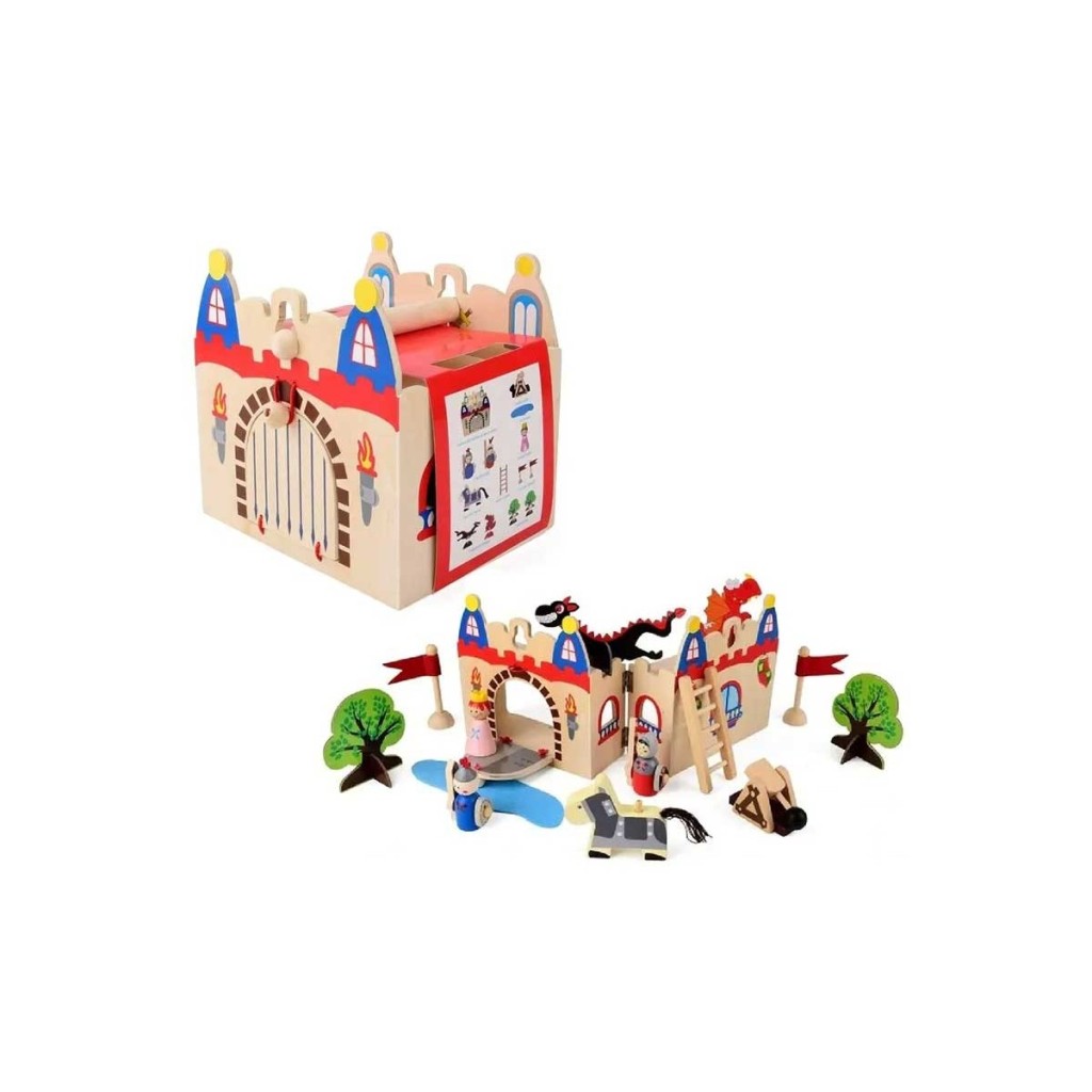 دارای : اکسسوریهای چوبی شامل: 1 قلعه، 2 شوالیه، 1 ملکه، 2 درخت، 2 پرچم، 2 اژدها، 1 اسب، 1 نردبان، 1 گودال آب و 1 منجنیق