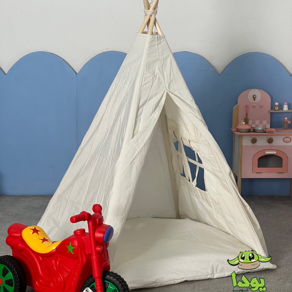 چادر بازی پنجره دار ساده کودک مدل سرخپوستی با تشک