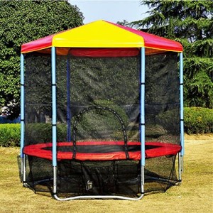کاور آبی رنگی با جنس PVC روی فریم ترامپولین و فنرها را پوشانده شده. (که در برابر آسیب ناشی از تماس کودکان و بزرگسالان با فنر ها جلوگیری کند و همچنین این کاور از فنر ها در برابر تابش خورشید و باران محافظت میکند.)