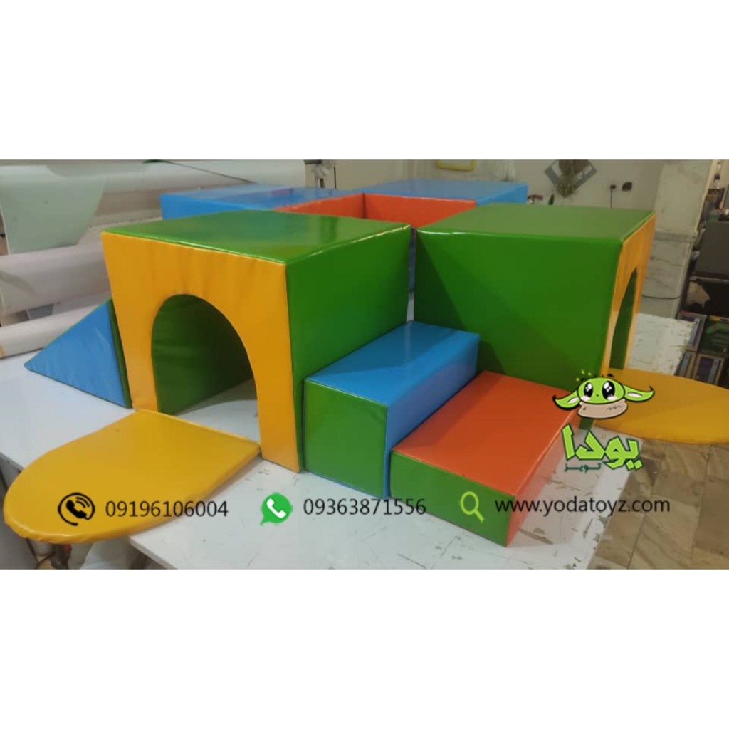 دارای 11 تکه فومی از جمله : (4 لانه خرگوش، 3 مکعب مستطیل فومی، 1 سرسره یا سطح شیب دار و 4 تشک)