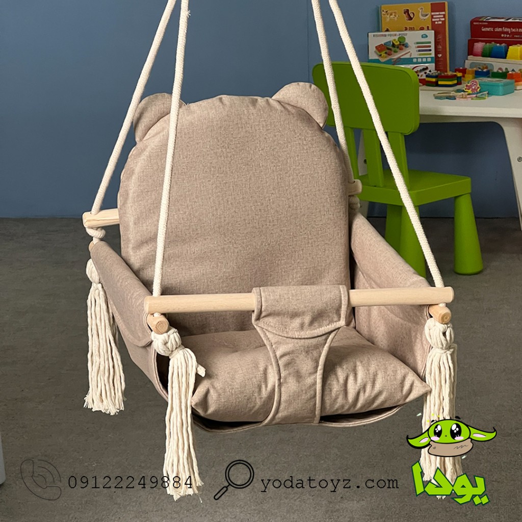 لوکس و کلاسیک : تلفیق چوب و پارچه مبلی تاب آویز را شیک و مناسب مادران خوش سلیقه میباشد.